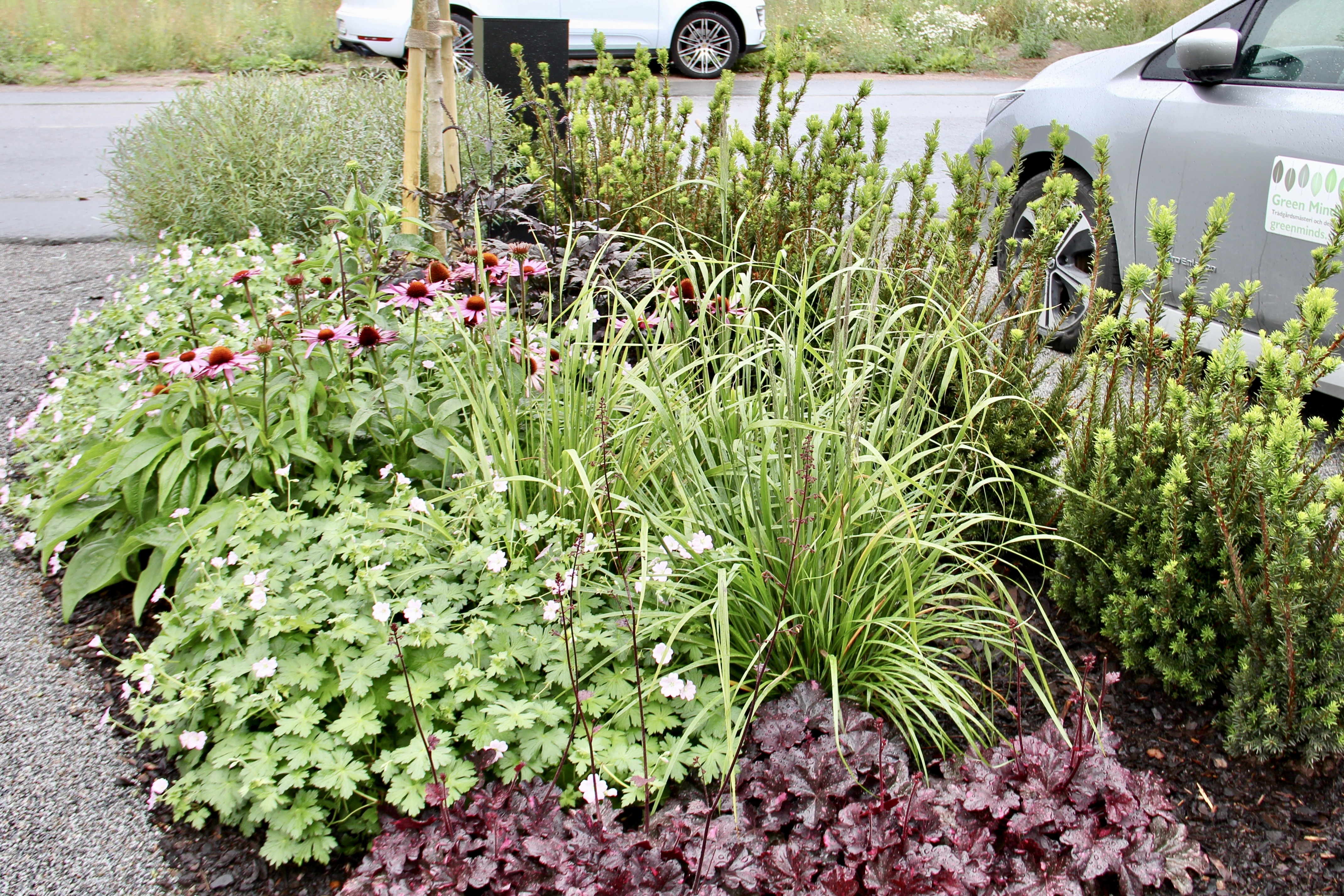 Här får växterna breda ut sig och det krävs ingen mer skötsel än etableringsbevattning, gödning, och initialt lite ogräsrensning tills buskar och perenner vuxit ihop.
