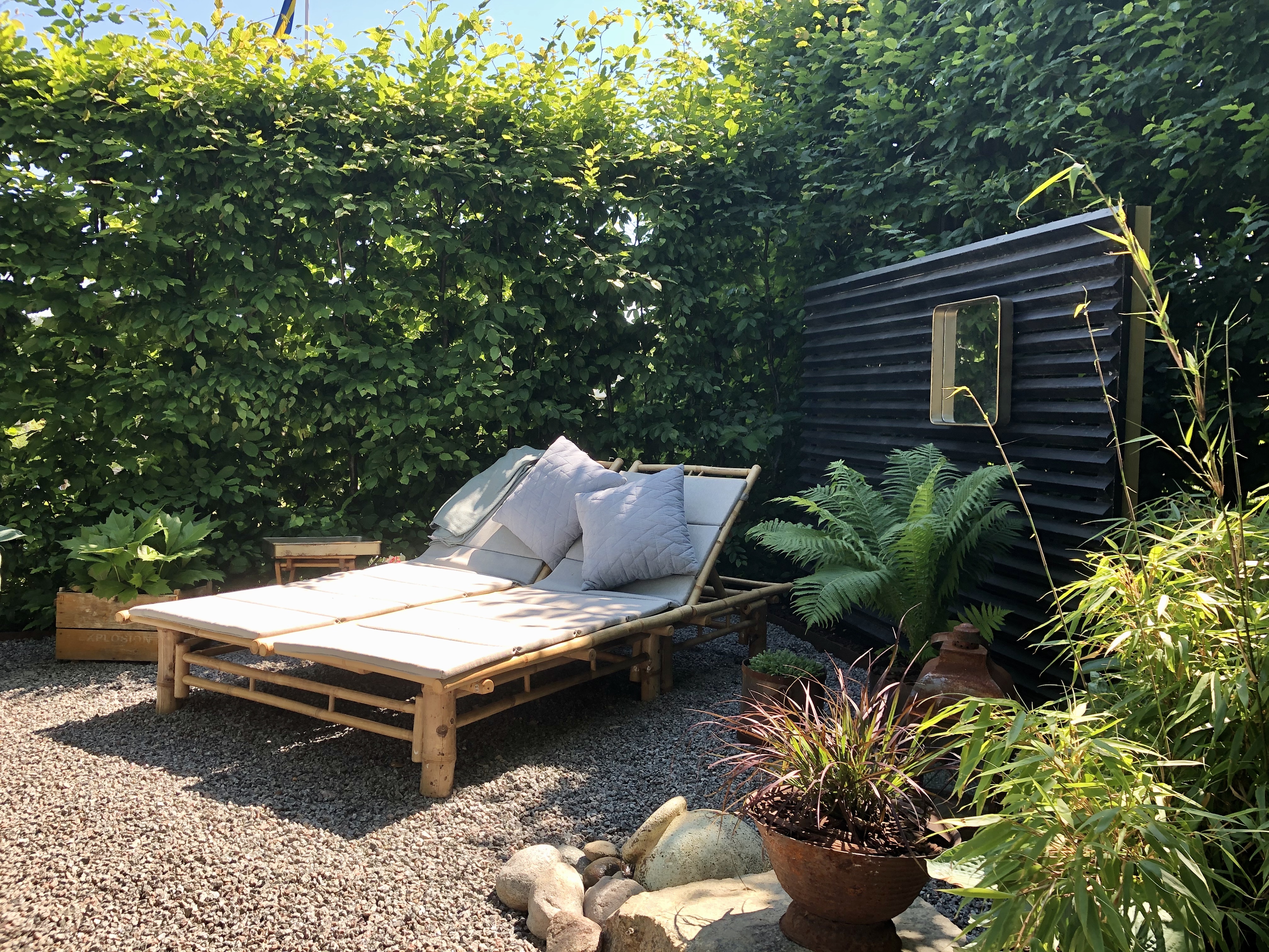 Ett halvskuggigt "dött" hörn av trädgården där en studsmatta stått och samlat ogräs under flera år fick ett lyft och blev familjens nya favoritplats.